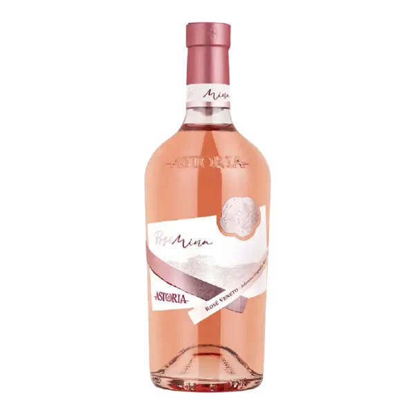 The Rosé Veneto Mina wine; soft pink with delicate rosy hues.